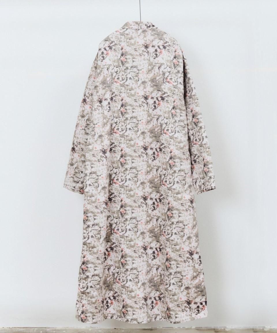 1970年代のフランスの画家の絵からイメージした抽象的な柄をジャガード織機でインディゴ糸を含む縦横共に4色使いで表現したオリジナルファブリック。